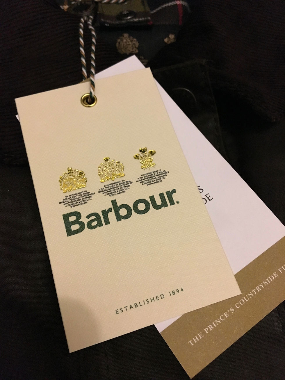 First thing to mention is the beautiful packaging and oh my word what lovely packaging it was! It was a bit like pass-the-parcel. The jacket itself was presented in the standard 'Barbour Green' box with the logo printed on.
